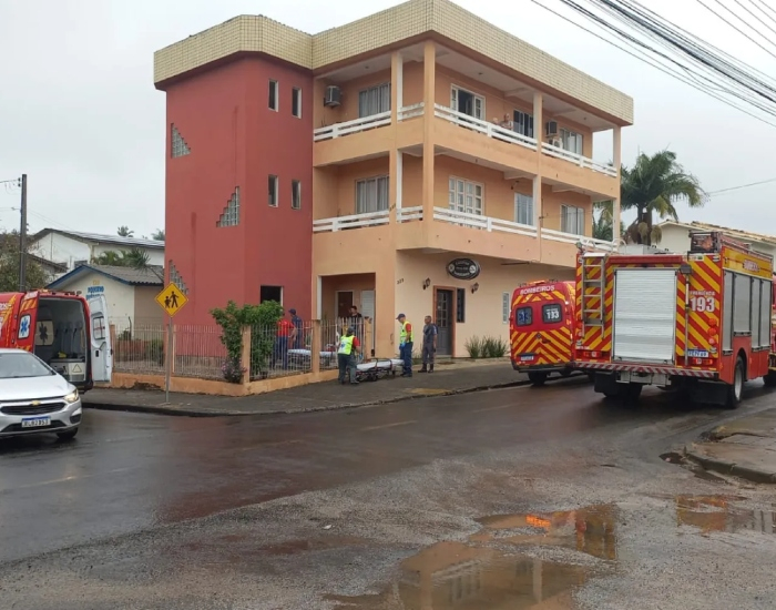 O Corpo de Bombeiros foi acionado e encontrou a vítima de 82 anos sentada em uma cadeira em frente ao elevador, apresentando fratura aberta com hemorragia ativa no membro inferior esquerdo. Foi realizado curativo compressivo e imobilização do membro inferior, colocado em maca rígida e conduzido ao hospital São Donato.