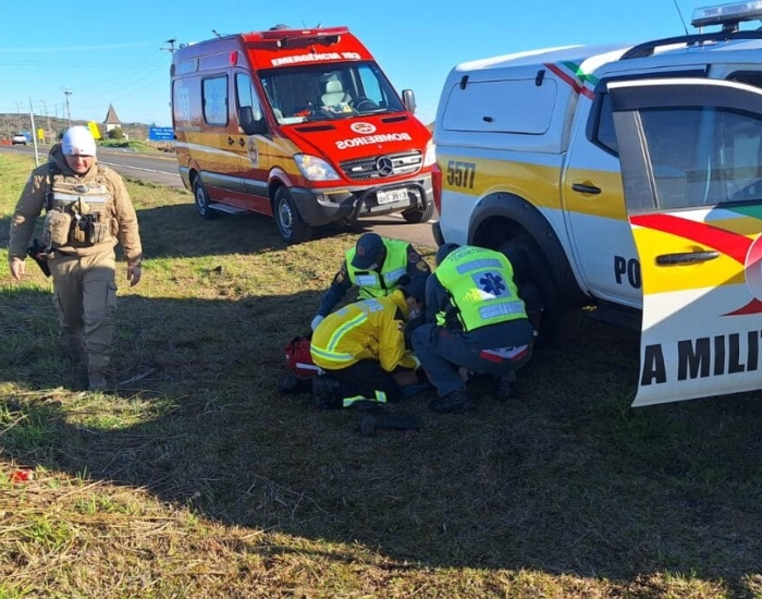 Ele precisou ser conduzido ao Hospital de São Joaquim por uma guarnição do Corpo de Bombeiros Militar, com suspeita de fraturas no ombro esquerdo e joelho esquerdo.