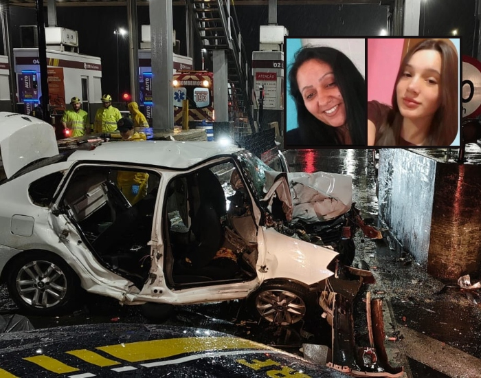 Divulgação/Folha Regional Duas mulheres de 44 e 15 anos morreram em um grave acidente de trânsito ocorrido em uma praça de pedágio, na BR-101, em São João do Sul.
