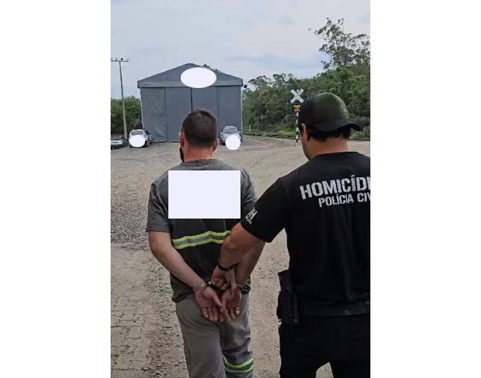 PCSC/Divulgação/Folha Regional A Polícia Civil prendeu o suspeito, de 35 anos, de ser autor de um homicídio qualificado, executado de forma cruel, contra a vítima identificada como Fernando Martinello Paez, de 47 anos. A prisão ocorreu nesta quinta-feira, dia 16, no local de trabalho do suspeito, no bairro Renascer, em Criciúma.