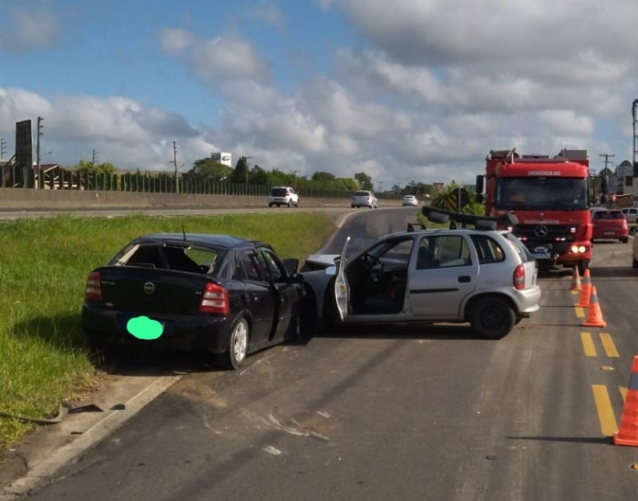 Uma colisão frontal entre dois veículos deixou três pessoas feridas na manhã deste sábado, dia 6. O acidente ocorreu na via lateral da rodovia, no município de Sombrio.