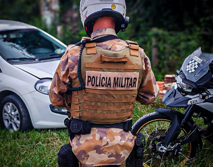 Os militares encontraram o veículo com os dois autores, sendo que um deles tentou fugir nadando em uma lagoa, mas foi alcançado e detido por um dos policiais.