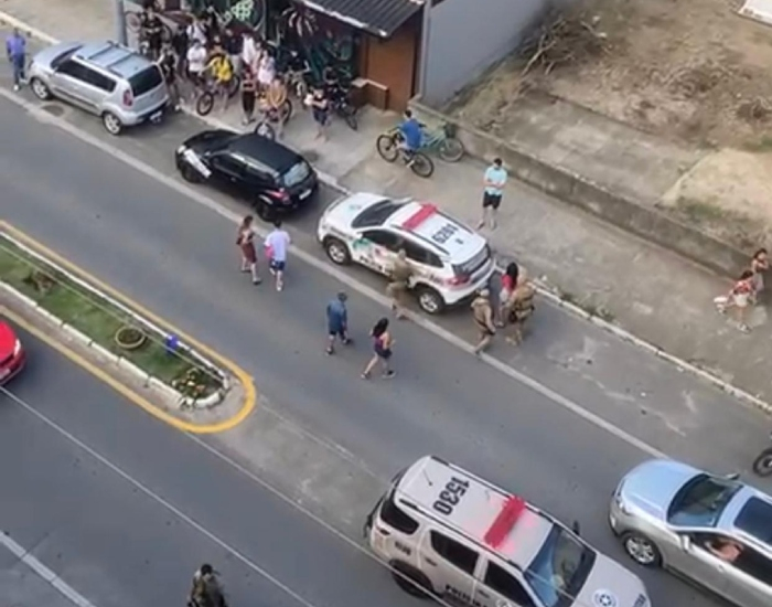 Segundo a guarnição, ao avistar os policiais, um homem jogou algo suspeito no chão. Os policiais se aproximaram e ao iniciarem a abordagem, o homem reagiu de forma agressiva desacatando os agentes. Em seguida, uma mulher que também estava no local, tentou defender o suspeito e atacou os policiais ao jogar uma cadeira sobre eles. A mulher também foi abordada e mostrou resistência, sendo necessário o uso de algemas para contê-la.