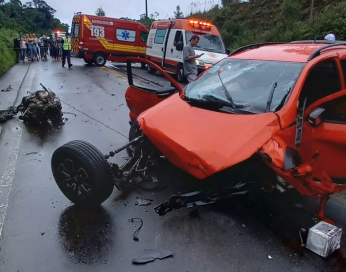 Guarnições do Samu de Orleans, Corpo de Bombeiros de Lauro Müller e Orleans e Polícia Militar Rodoviária Estadual (PMRv) de Cocal do Sul e Lauro Müller foram acionadas no local para atender a colisão envolvendo um veículo Hyundai HB20 e um VW Saveiro. Com o forte impacto, os veículos ficaram completamente destruídos, com peças espalhadas pela rodovia.