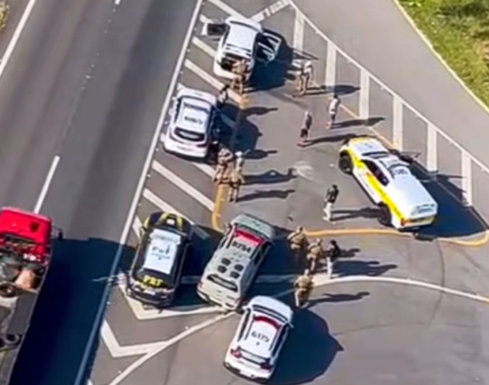 A partir disso, foi realizada ação integrada com a Polícia Rodoviária Federal e a Polícia Militar, que passaram a acompanhar o veículo, realizando a abordagem na altura do município de Sangão.