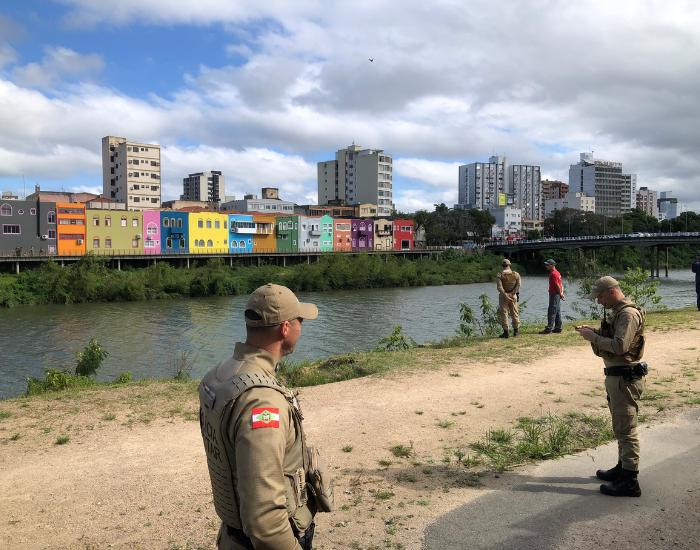 O Corpo de Bombeiros e guarnições da Polícia Militar foram acionados e iniciaram as buscas entre as pontes centrais, próximo ao supermercado Angeloni, na beira-rio.