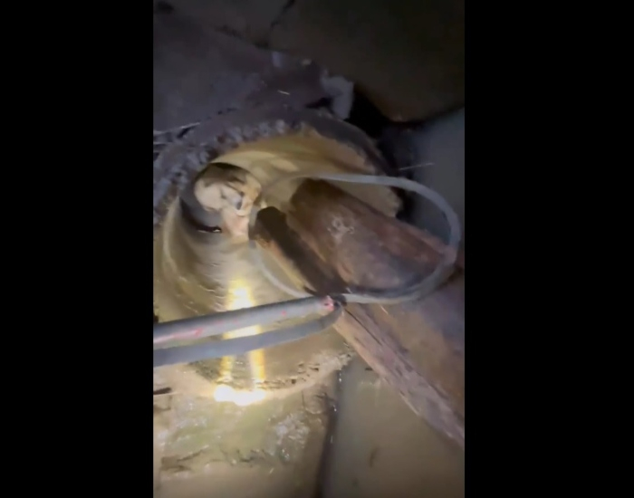 Um cachorro ficou preso dentro de tubulações da rede pluvial no bairro São Clemente e moradores acionaram a guarnição para fazer o resgate.