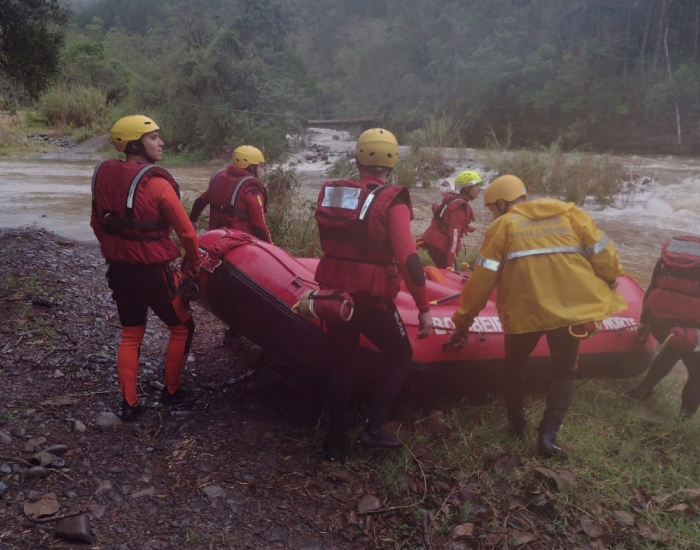Os socorristas foram acionados perto da 1 hora da madrugada deste domingo, dia 24. Os bombeiros de Orleans e São Ludgero conseguiram resgatar duas vítimas, mas, durante a tentativa de salvamento da terceira, um dos militares também foi arrastado e ficou ilhado.