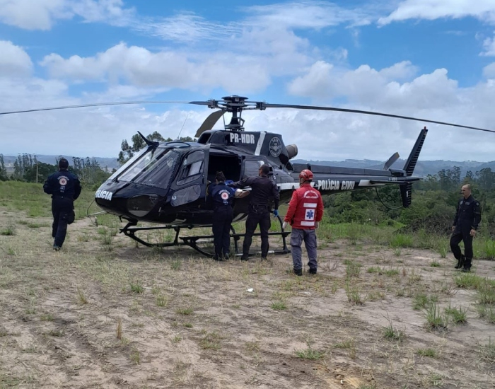 A vítima foi encaminhada pela aeronave ao hospital de Tubarão. A Polícia Militar também atendeu a ocorrência.