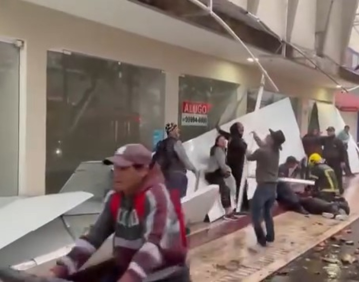 Imagens foram gravadas por pessoas que passavam pela avenida dos Estados, esquina com a rua 1.021, no Centro de Balneário Camboriú. Algumas pessoas tentavam segurar a estrutura, enquanto uma mulher estava deitada no chão. As informações foram divulgadas pelo site ND Mais.