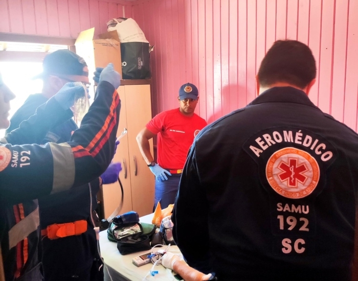 Os socorristas fizeram os primeiros atendimentos, entubaram e estabilizaram a senhora para transportá-la em uma maca até o local onde estava a aeronave. Após o deslocamento, ela foi transferida de helicóptero ao hospital São José, em Criciúma, para atendimento médico especializado.