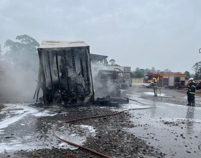 CBMSC/Divulgação/Folha Regional O Corpo de Bombeiros Militar atendeu uma ocorrência de incêndio em um caminhão-tanque carregado com 18 mil litros de óleo diesel no bairro Primeira Linha, em Criciúma, nesta terça-feira, dia 8. A situação mobilizou cinco viaturas da corporação e não houve registro de vítimas.