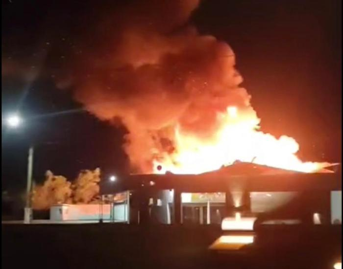 Reprodução/Folha Regional Um incêndio de grandes proporções atinge na noite desta sexta-feira, dia 24, a lanchonete da Top Brasil, em Tubarão. O prédio fica no bairro Revoredo, às margens da BR-101.