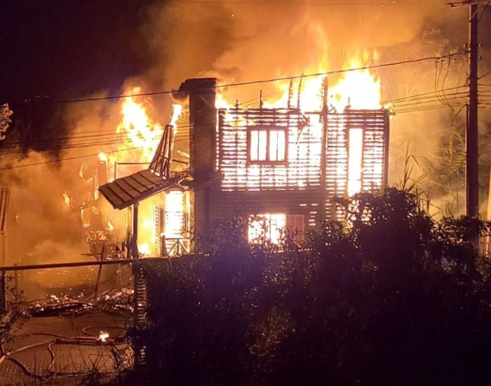 Um incêndio de grandes proporções atingiu casas de madeira na noite desta terça-feira, dia 13, em Laguna. O fato ocorreu na localidade de Ponta do Daniel.