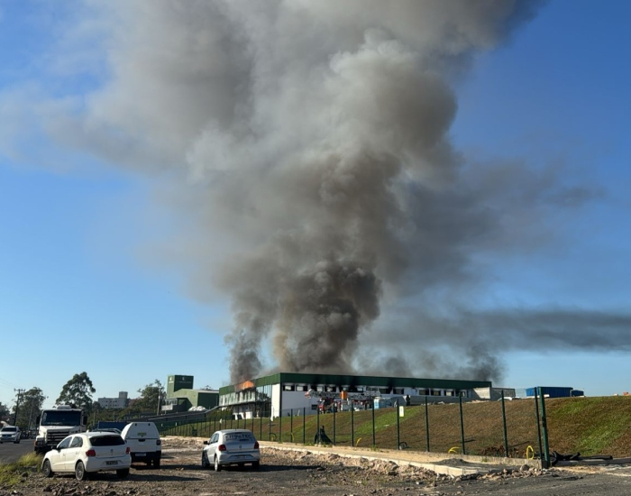 Mayara Cardoso/Divulgação/Folha Regional Um incêndio de grandes proporções em uma empresa de tecnologia localizada no bairro Mineira Velha, em Criciúma, chama a atenção de moradores na manhã desta terça-feira.