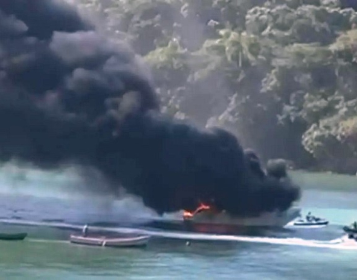 Divulgação/Folha Regional Um incêndio em uma lancha foi registrado em Porto Belo, no Litoral Norte de Santa Catarina. A ocorrência foi registrada na tarde desta quarta-feira, dia 22, na região conhecida como Caixa D’Aço.