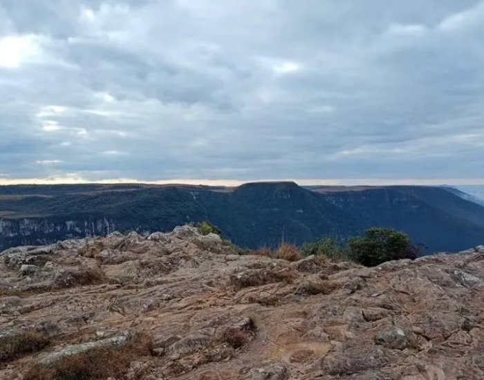 Divulgação/Folha Regional Uma menina de 12 anos caiu no Cânion Fortaleza, no Parque Nacional da Serra Geral, em Cambará do Sul (RS), nesta quinta-feira, dia 10. Equipes de resgate foram acionadas e após buscas, a menina foi identificada com o uso de um drone com câmera térmica.