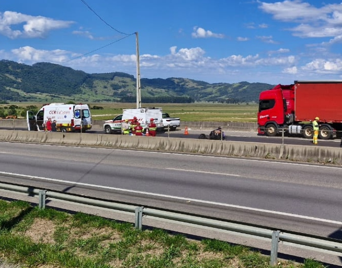 Divulgação/Folha Regional Um grave acidente de trânsito resultou na morte de um motociclista no início da tarde desta sexta-feira, dia 18, na BR-101, no Km 322, sentido norte, em Pescaria Brava.