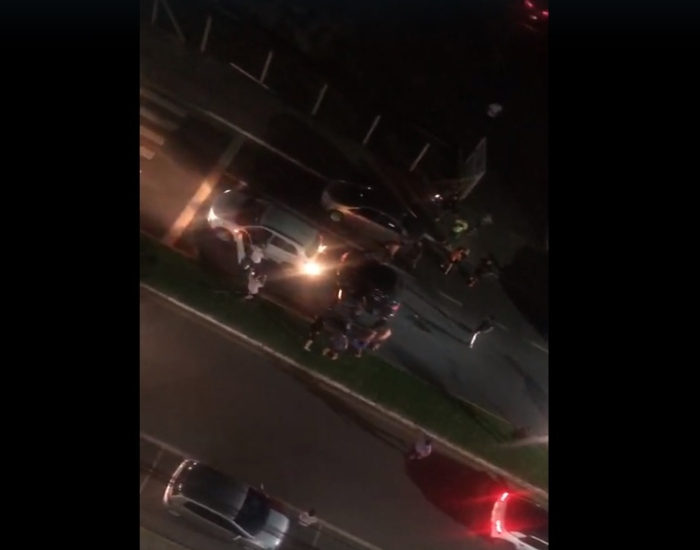 Após o tumulto, o motorista fugiu do local em alta velocidade. A PM foi acionada