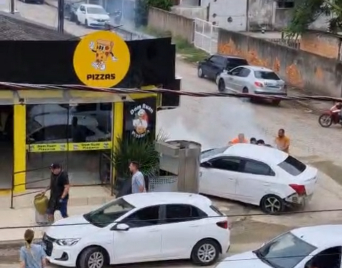 Uma intensa fumaça começou a sair do veículo, e pessoas que estavam no local arrombaram as portas para a retirada do motorista, que teria sofrido um mal súbito.
