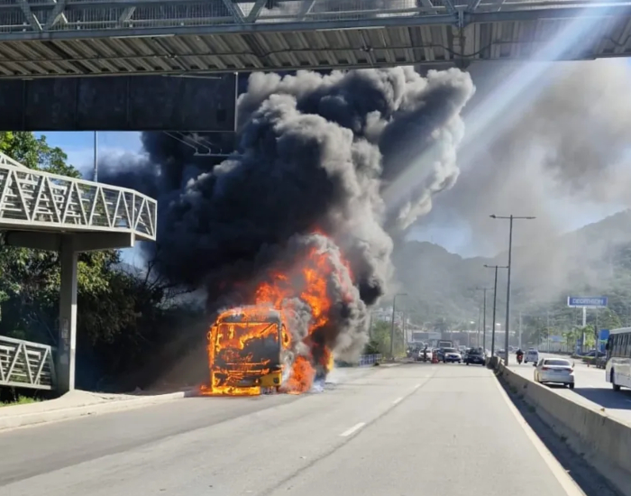 Polícia Militar Rodoviária/Divulgação/Folha Regional Um ônibus foi atingido por chamas na manhã desta quarta-feira, dia 8, na SC-401, em frente ao Floripa Shopping (sentido bairro-centro), bairro Saco Grande, em Florianópolis.