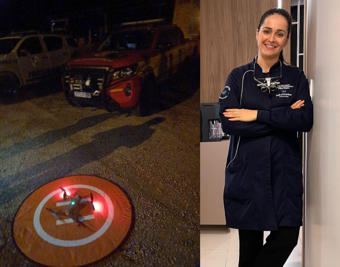 Os policiais utilizam drones e contam com o auxílio de cães para localizar o autor que matou a própria irmã a facadas, no bairro Pouso Alto.