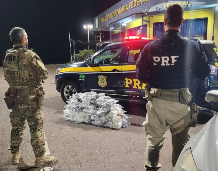 O motorista, de 29 anos, natural do Paraná, com ocorrência por tráfico de drogas, e a passageira, de 31, do Rio de Janeiro, disseram que pegaram o entorpecente na fronteira com o Uruguai e que seriam pagos para levá-lo até o Paraná.