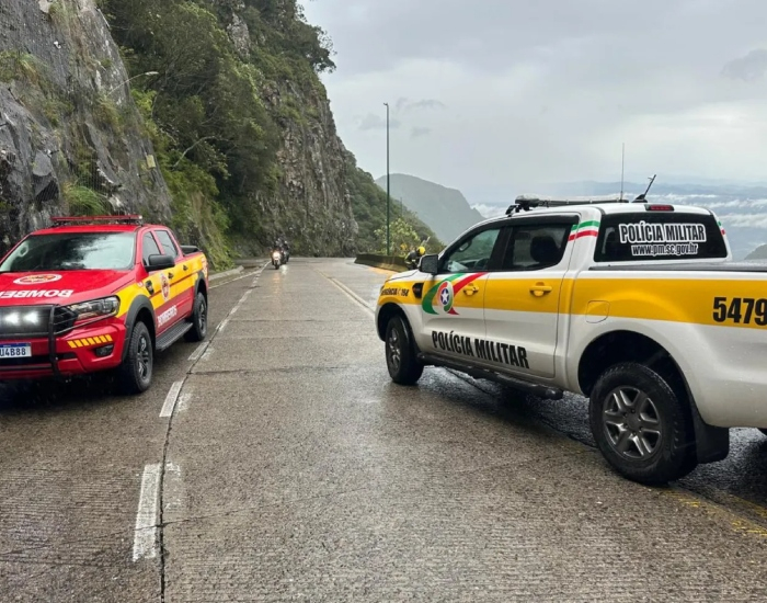 PMRv/Divulgação/Folha Regional Os motoristas precisam redobrar a atenção ao transitar pela Serra do Rio do Rastro, trecho da rodovia SC-390 entre Lauro Müller e Bom Jardim da Serra. Na tarde desta terça-feira, dia 8, a Polícia Militar Rodoviária (PMRv) identificou um vazamento de óleo na pista.