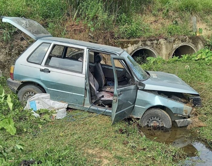 Segundo o Corpo de Bombeiros, um veículo com três ocupantes perdeu o controle da direção, saiu da pista, e caiu em uma ribanceira de cerca de três metros.