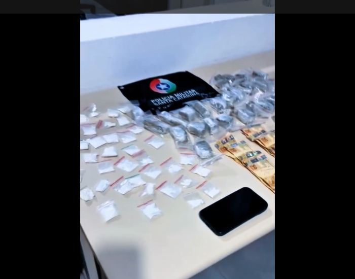 Durante abordagem, foram localizadas porções de cocaína, maconha e dinheiro
