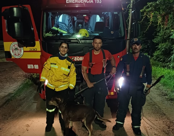 Divulgação/Folha Regional Uma ação rápida do Corpo de Bombeiros Militar de Tubarão resultou no resgate de dois cães na noite desta sexta-feira, dia 13. A ocorrência foi registrada na Estrada Geral da Madre, quando dois cães caíram em uma tubulação de cerca de 8 metros de profundidade.