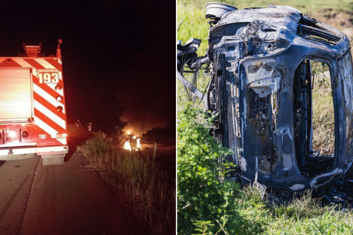 A ocorrência foi atendida por volta das 5 horas pelo Corpo de Bombeiros. O veículo estava fora da pista e lateralizado quando foi encontrado, já em chamas.