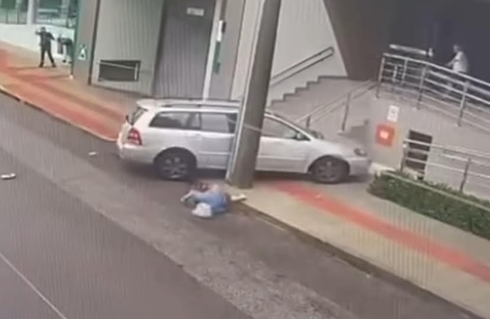Foto: Reprodução Um acidente na Travessa Antônio Manoel Prudêncio, em frente ao Complexo Médico Provida, no Centro de Tubarão, assustou quem passava pelo local nesta segunda-feira (6). Um carro avançou sobre a calçada e a caroneira cai do veículo em movimento.
