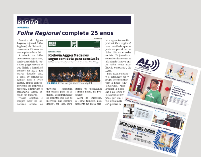 Folha Regional e Agora Laguna são veículos parceiros em diversas coberturas jornalísticas na região, reforçando o trabalho conjunto para um jornalismo mais abrangente e dinâmico.